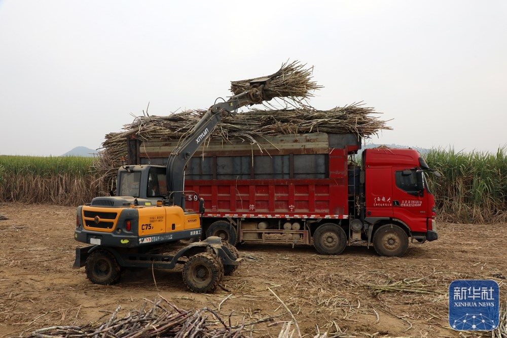 來賓市興賓區(qū)鳳凰鎮(zhèn)國家現(xiàn)代農(nóng)業(yè)產(chǎn)業(yè)園黃安優(yōu)質(zhì)“雙高”糖料蔗基地(劉維 攝) 在興賓區(qū)黃安優(yōu)質(zhì)“雙高”糖料蔗基地,蔗農(nóng)莫崇虛正在自家甘蔗地里忙碌。得益于規(guī);藴驶N植和全程機械化作業(yè),他種蔗的信心十足:“以前看天吃飯,現(xiàn)在科學增收。2023年我才種了15畝甘蔗,現(xiàn)在已經(jīng)擴種到90畝。有了‘雙高’基地的好條件,機械化作業(yè)省心又高效! 截至目前,來賓市累計建成“雙高”基地106.5萬畝,打造萬畝連片標準化基地22個。2025/2026年榨季,全市糖料蔗種植面積穩(wěn)定在202.85萬畝,預計進廠原料蔗將歷史性突破1000萬噸。規(guī)模的背后,是科技對“第一車間”的深刻重塑。 機械化的普及,極大解放了生產(chǎn)力。2024/2025年榨季,來賓市投入甘蔗聯(lián)合收割機226臺,建成分步式機收除雜點101個,機收總量達69.92萬噸,機收量與設(shè)備數(shù)量均居廣西首位。 在興賓區(qū)糖料蔗分步式機收除雜點,福庫農(nóng)機專業(yè)合作社理事長余才庫操作著甘蔗抓機,高效將經(jīng)過除雜處理的甘蔗裝上運輸車輛!啊罗r(nóng)人’就得會用新裝備。我們合作社大小農(nóng)機60臺套,還入駐‘滴滴農(nóng)機’平臺接單,活兒多,效率高!