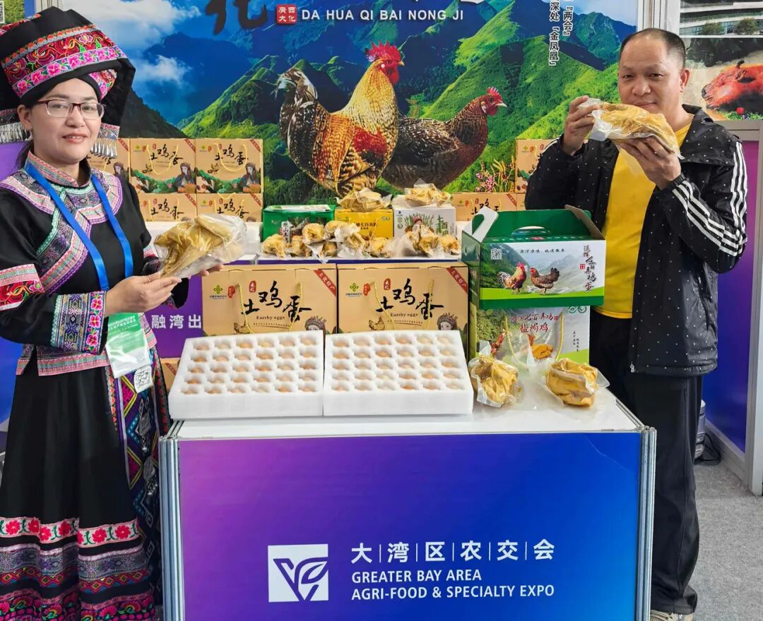 七百弄雞亮相2025大灣區(qū)農(nóng)產(chǎn)品交易會暨土特產(chǎn)精品博覽會。大化供銷社供圖 為推動消費幫扶從“短期助銷”向“長期暢銷”轉(zhuǎn)變,大化與寶安構(gòu)建“基地+標(biāo)準(zhǔn)+品牌”三重保障體系,兩地企業(yè)聯(lián)合共建“大化瑤鄉(xiāng)農(nóng)產(chǎn)品直采直供基地”“深圳農(nóng)場”以及粵桂協(xié)作農(nóng)特產(chǎn)品冷鏈物流共享產(chǎn)地倉,并引入深圳標(biāo)準(zhǔn)促進(jìn)會等專業(yè)機(jī)構(gòu),指導(dǎo)企業(yè)建立“從養(yǎng)殖到包裝”的全流程質(zhì)量管控體系,推動“七百弄鹽焗雞”“大化白玉薯”等6個產(chǎn)品通過“圳品”認(rèn)證,成為大灣區(qū)市場“優(yōu)質(zhì)農(nóng)產(chǎn)品”代名詞,實現(xiàn)“優(yōu)質(zhì)優(yōu)價”。
