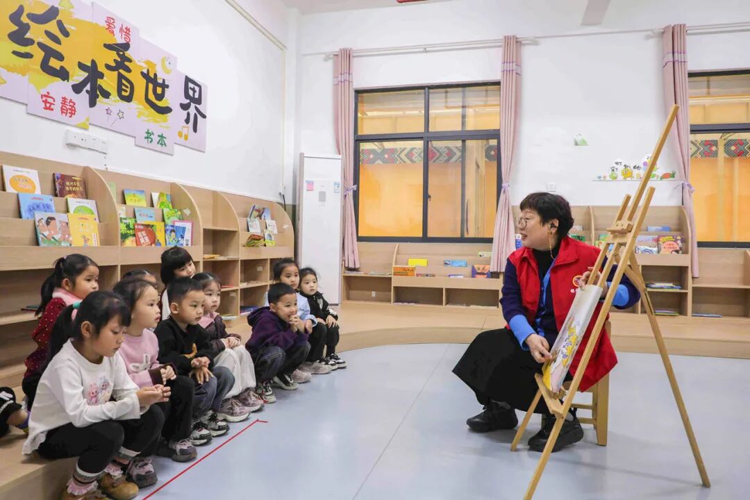 “銀齡行動”幫扶專家李朵朵組織大化第二幼兒園小朋友看繪本。陸榮斌 攝 |