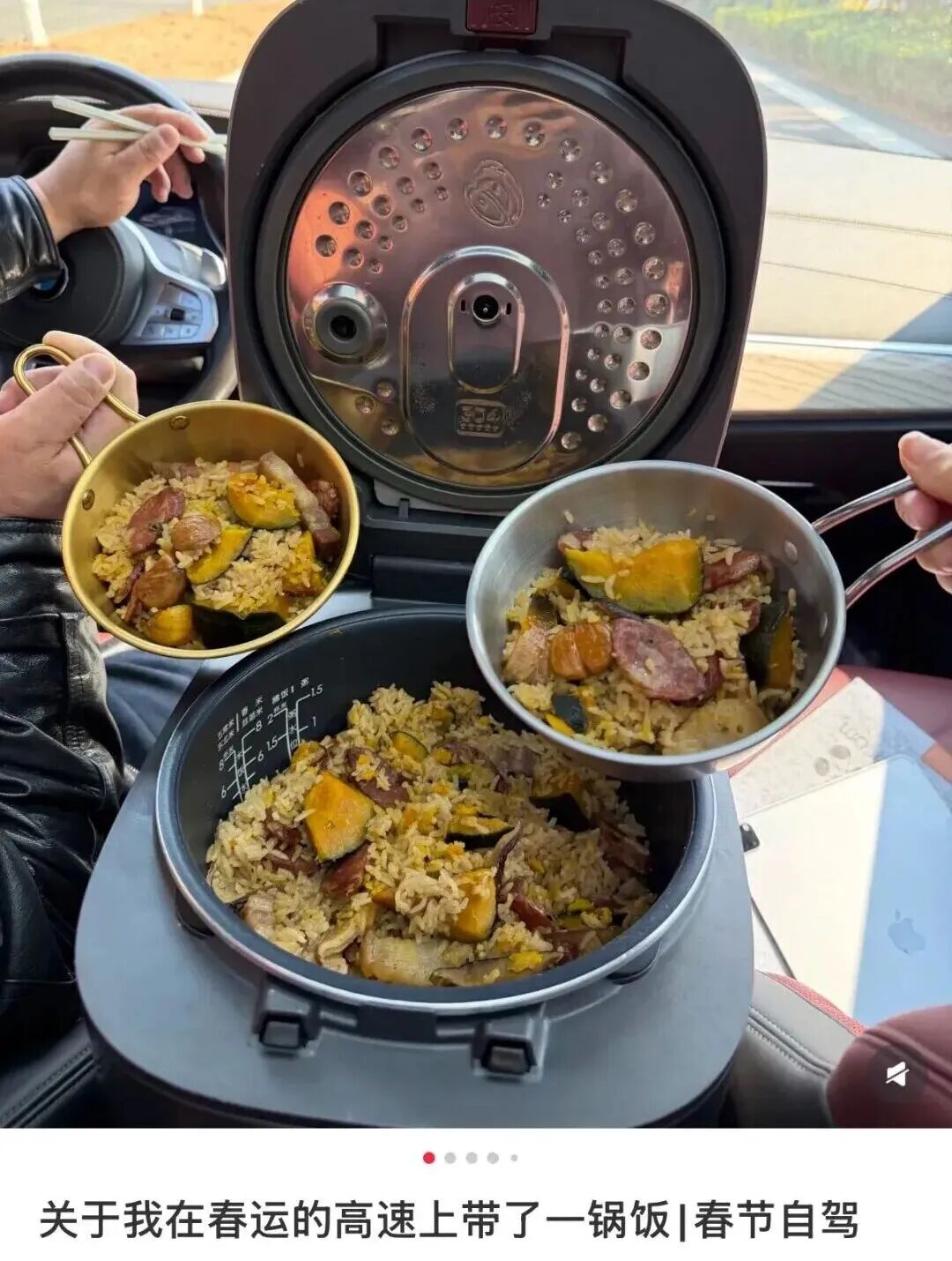 離家的路上 長途開車餓了怎么辦? 浙江黃女士用一鍋熱氣騰騰的 電飯煲燜飯 給出了答案