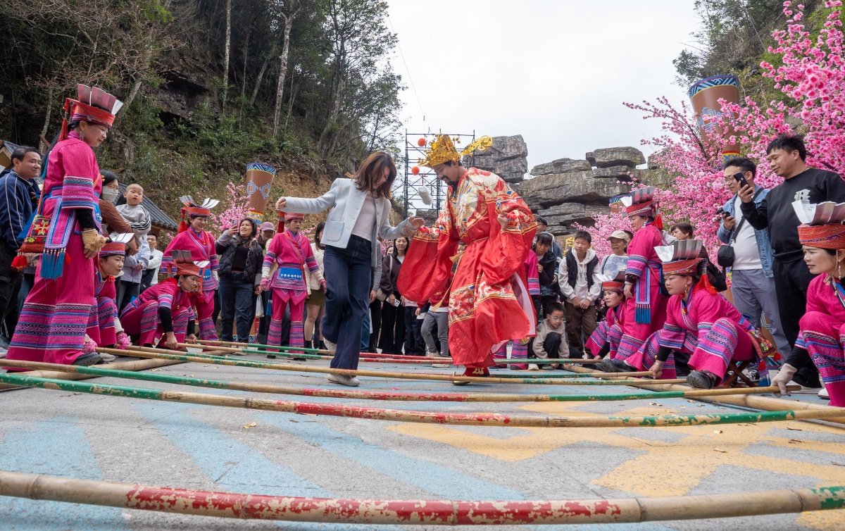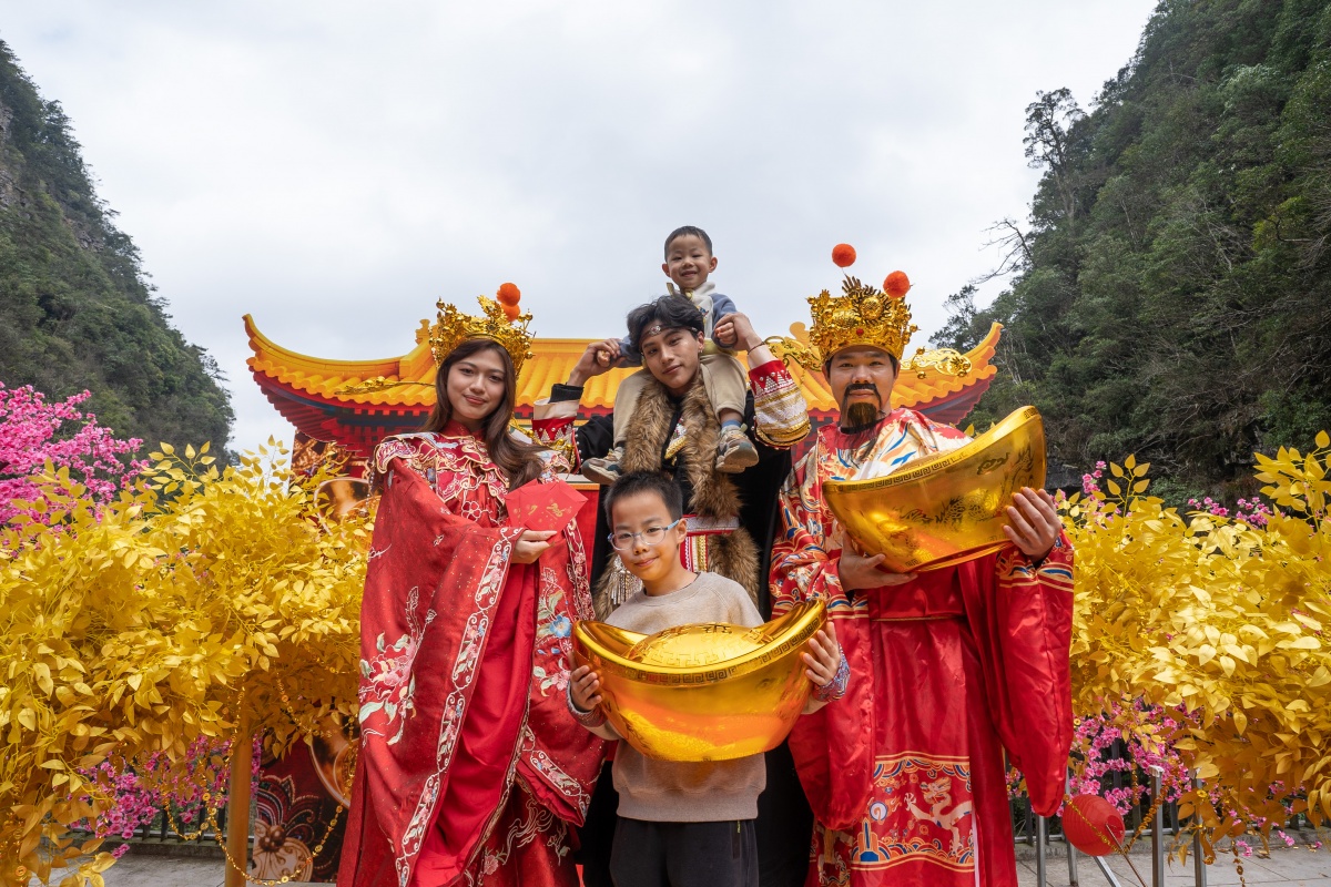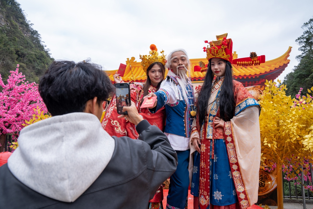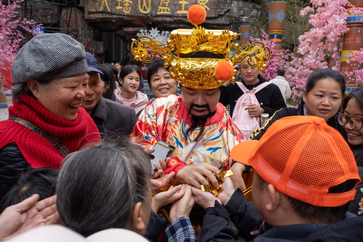 2月21日,大年初五,來賓市金秀瑤族自治縣大瑤山盤王界景區(qū)里108位“財神”,以各種喜樂的方式,向游客送祝福,吸引八方游客前來接福。文旅的深度融合,使游覽山岳美景與體驗民俗文化兩相宜,帶動假日文旅人氣持續(xù)火爆。