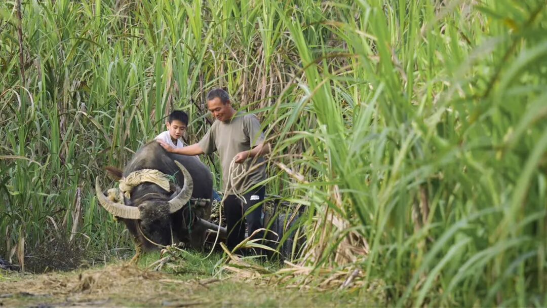 通過持續(xù)的技術(shù)革新與品種改良 廣西這片曾被自然條件所限的土地 實(shí)現(xiàn)了高糖高產(chǎn) 甘蔗單產(chǎn)超越全國乃至世界平均水平 水牛換“鐵! 瓦房變樓房 甘蔗撐起老鄉(xiāng)的甜蜜生活 1988年 吳必超第一次種甘蔗時(shí) 他最親密的伙伴就是一頭水牛